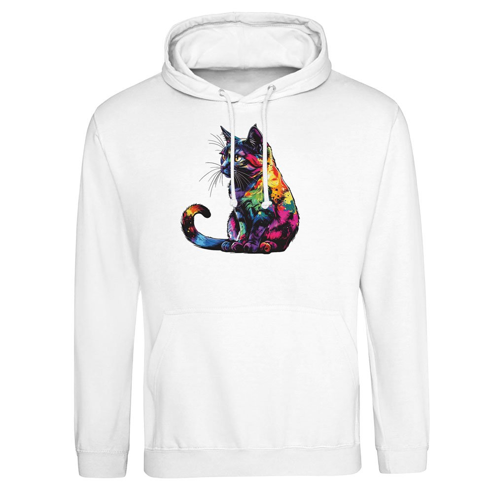 Hoodie Unisex White Rainbow Cat